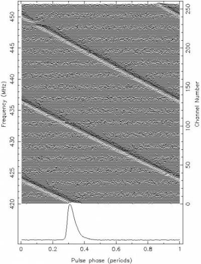 Auf dem Weg vom Pulsar zum Empfänger auf der Erde läuft das Signal durch das interstellare Medium (ISM). Einer der dabei auftretenden Effekte ist die Dispersion. Im wesentlichen führt dies dazu, dass Signale mit niedriger Frequenz später ankommen als Signale mit höherer Frequenz. Bei Pulsaren beginnt die Reise für alle Frequenzen zum gleichen Zeitpunkt. Auf dem Weg zur Erde werden die verschiedenen Frequenzkomponenten unterschiedlich verzögert, was zu einem merklichen Zeitunterschied zwischen niedrigen und hohen Frequenzen führt.
